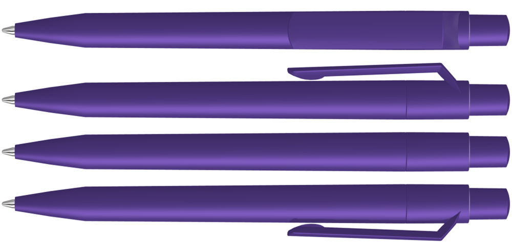 Druckkugelschreiber mit gedeckt mattem Gehäuse, Clip, Drücker und Stopfen. mehr