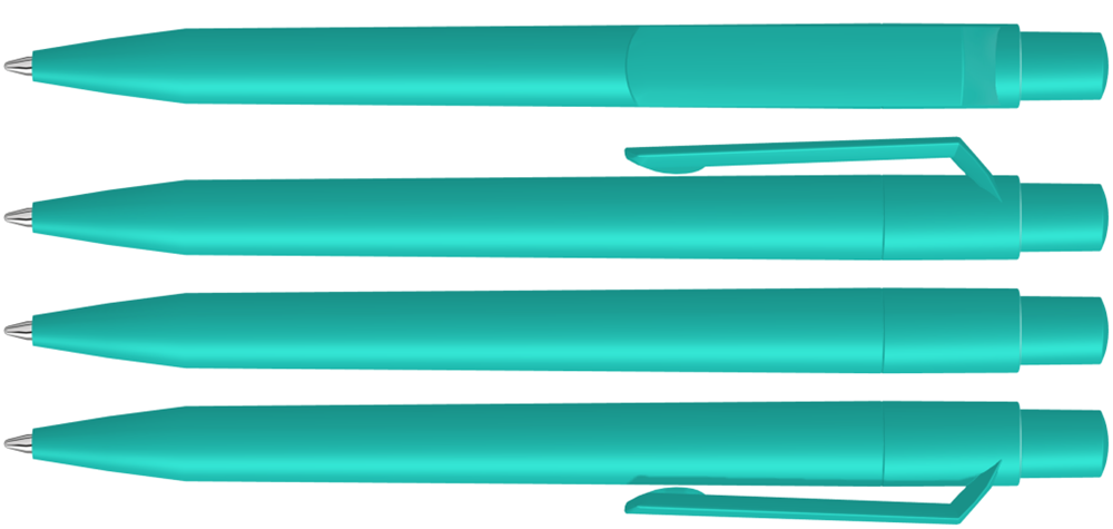Druckkugelschreiber mit gedeckt mattem Gehäuse, Clip, Drücker und Stopfen. mehr