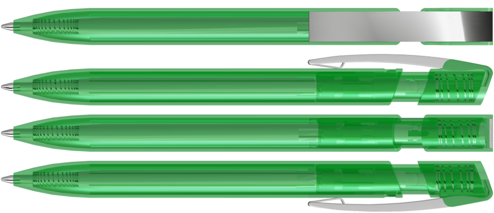 Druckkugelschreiber mit transparent glänzendem Gehäuse und flexiblem Metallclip glanzverchromt. mehr