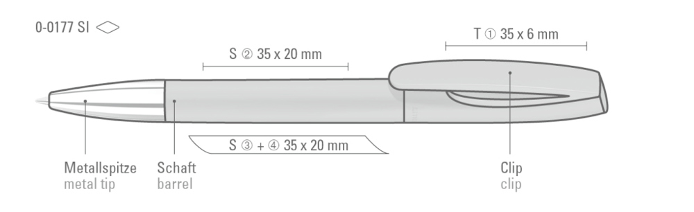 Drehkugelschreiber mit matt gedecktem Gehäuse und silberner Spitze glanzverchromt.
