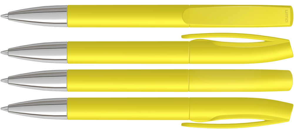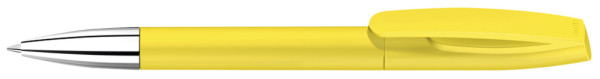 Drehkugelschreiber mit matt gedecktem Gehäuse und silberner Spitze glanzverchromt.