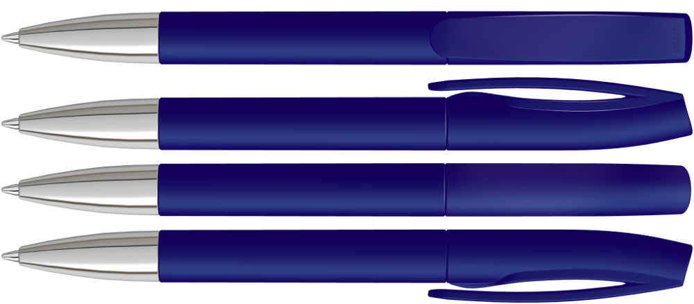 Drehkugelschreiber mit matt gedecktem Gehäuse und silberner Spitze glanzverchromt.
