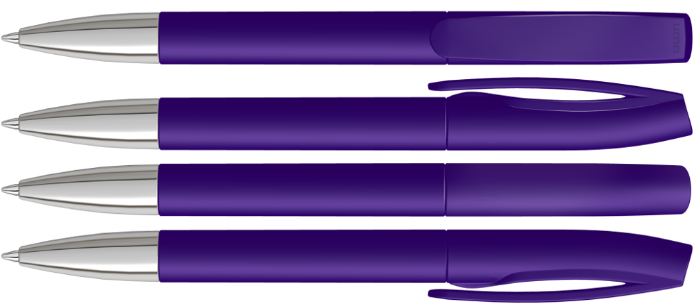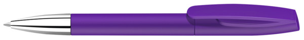 Drehkugelschreiber mit matt gedecktem Gehäuse und silberner Spitze glanzverchromt.