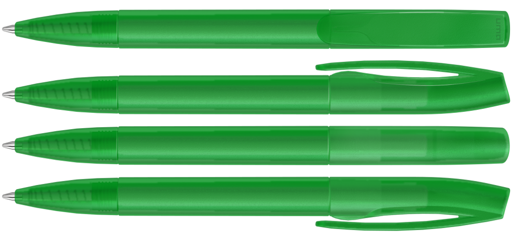 Drehkugelschreiber mit transparent gefrostetem Gehäuse.