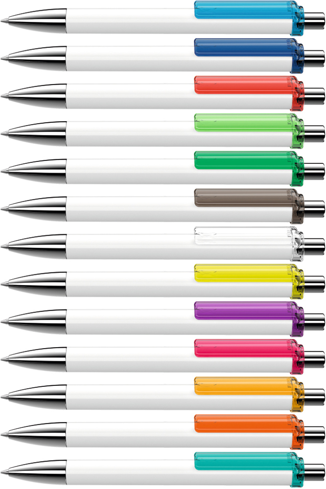 Druckkugelschreiber mit gedeckt glänzendem Schaft, transparent glänzendem Clip, Metallspitze und... mehr