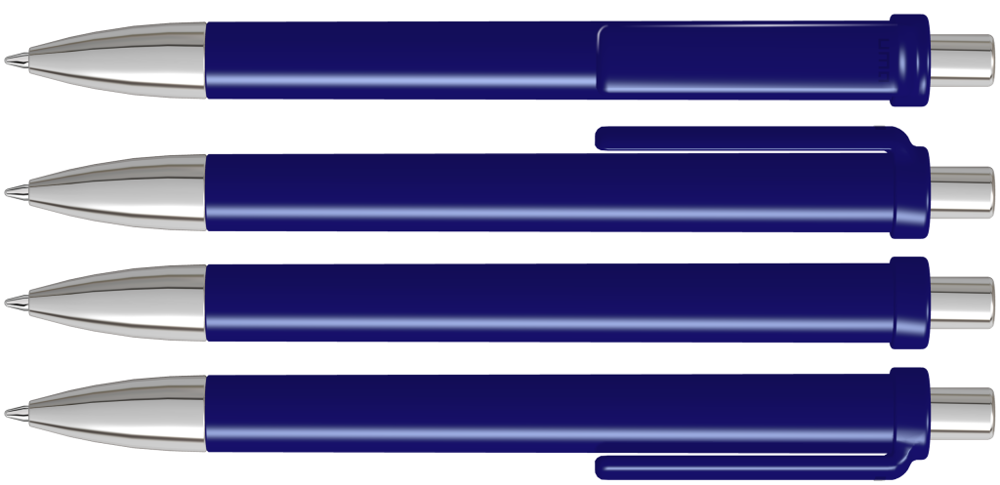 Druckkugelschreiber mit gedeckt glänzendem Schaft und Clip, Metallspitze und Metalldrücker glanzverchromt.