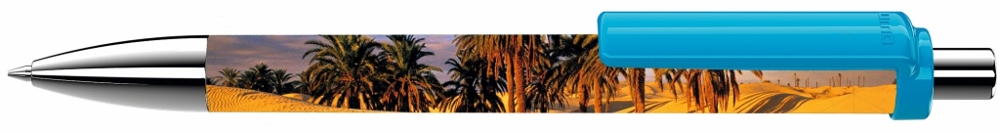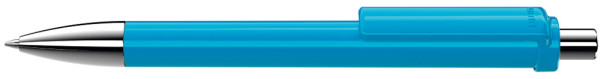 Druckkugelschreiber mit gedeckt glänzendem Schaft und Clip, Metallspitze und Metalldrücker glanzverchromt.