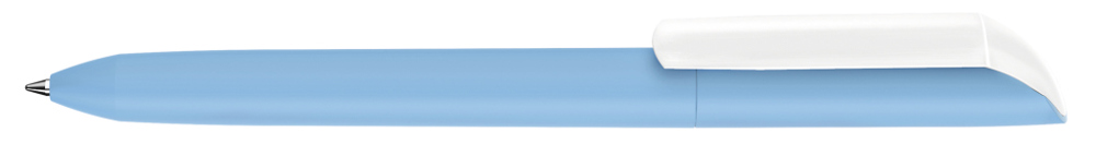 Drehkugelschreiber mit Softtouch-Gehäuse und gedeckt glänzendem Clip in weiß.
