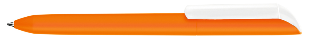 Drehkugelschreiber mit Softtouch-Gehäuse und gedeckt glänzendem Clip in weiß.