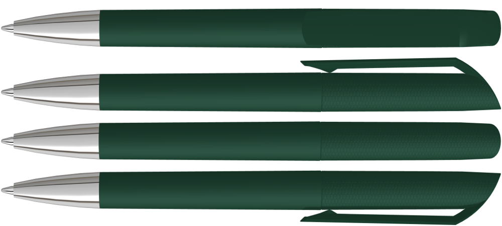 Drehkugelschreiber mit Softtouch-Gehäuse und gedeckt glänzendem Clip, Spitze glanzverchromt.