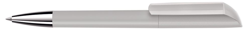 Drehkugelschreiber mit Softtouch-Gehäuse und gedeckt glänzendem Clip, Spitze glanzverchromt.