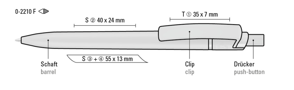 Druckkugelschreiber aus recyceltem PET-Material mit matt gedecktem Gehäuse, Clip und Drücker.