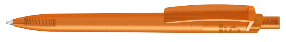 Druckkugelschreiber aus recyceltem PET-Material mit transparent gefrostetem Gehäuse, Clip und Drücker.