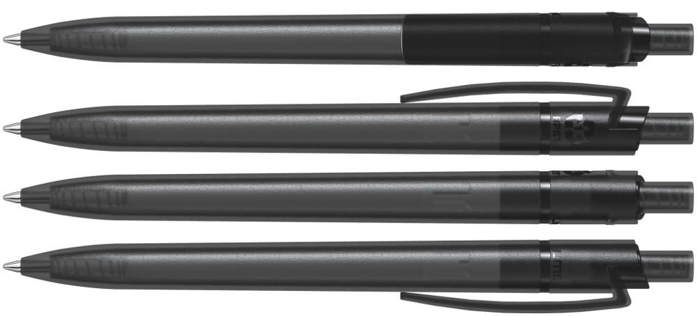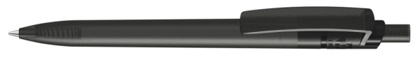 Druckkugelschreiber aus recyceltem PET-Material mit transparent gefrostetem Gehäuse, Clip und Drücker.