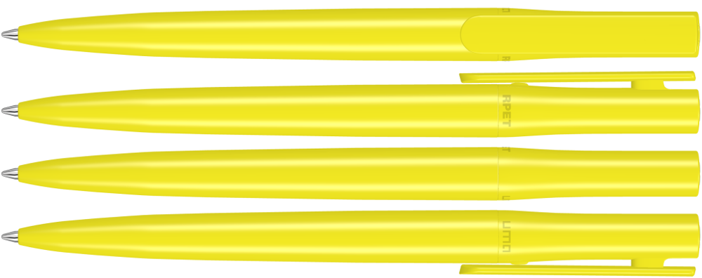 Drehkugelschreiber aus recyceltem PET-Material mit gedeckt glänzendem Gehäuse.