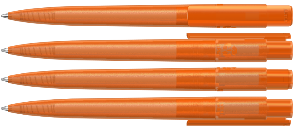 Druckkugelschreiber aus recyceltem PET-Material mit transparent gefrostetem Gehäuse und Clip.