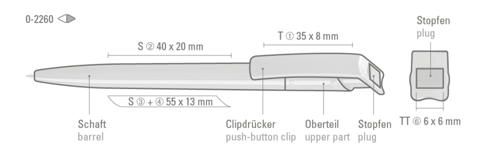 Druckkugelschreiber aus recyceltem PET-Material mit gedeckt glänzendem Gehäuse und Stopfen. mehr