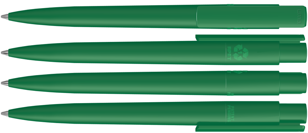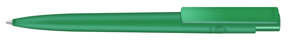 Druckkugelschreiber aus recyceltem PET-Material mit matt gedecktem Gehäuse und Clip.