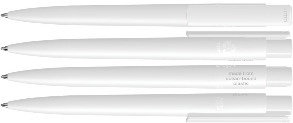 Druckkugelschreiber aus recyceltem PET-Material aus Ocean Bound Plastic mit matt gedecktem Gehäuse und Clip. Das durch Plastic Bank gesammelte Ocean Bound Plastic, auch bekannt als Social Plastic®, wird in Europa zu einem recycelten PET Schreibgerät für einen langlebigen und nachhaltigen Werbeeinsatz upgecycelt.