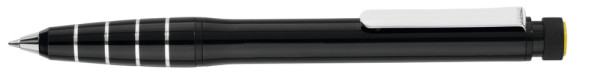 Metall-Drehkugelschreiber aus Aluminium mit integriertem gelb schreibenden Textmarker im Schaft. Der Textmarker lässt sich mittels Drehbewegung aus dem Schaft herausnehmen und kann separat genutzt werden.