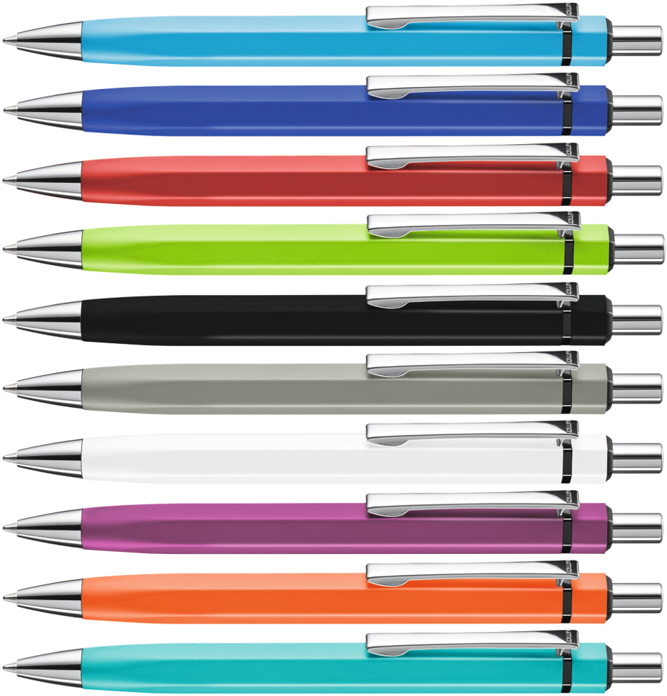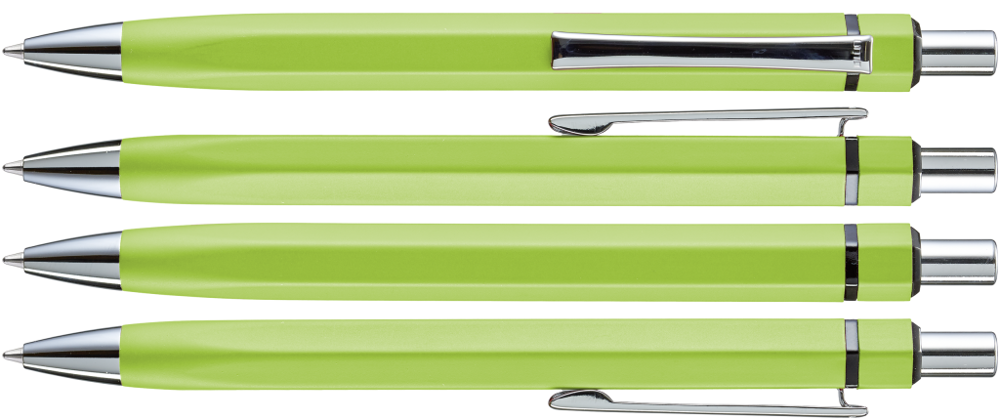 Metall-Druckkugelschreiber mit matt lackiertem, sechskantigem Aluminiumschaft. Metallclip,... mehr