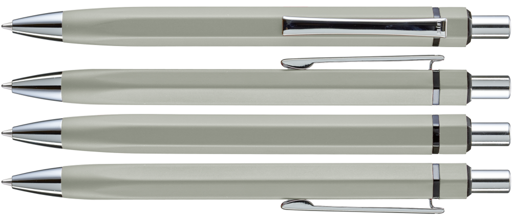 Metall-Druckkugelschreiber mit matt lackiertem, sechskantigem Aluminiumschaft. Metallclip,... mehr