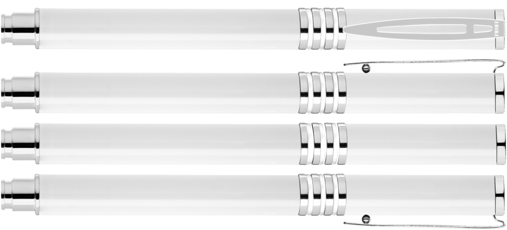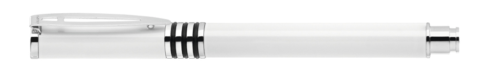 Metall-Rollerball mit glänzend lackiertem Aluminiumschaft und 3 eingelassenen, kombinierbaren Gummiringen. Metallbeschlagteile glanzverchromt.