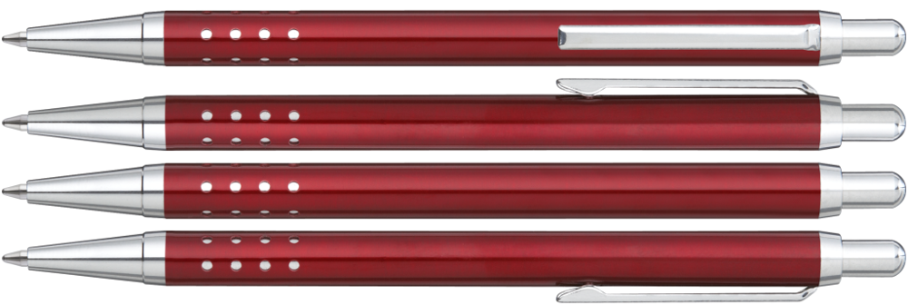 Metall-Druckkugelschreiber lackiert mit gelochter Griffzone. Metallbeschlagteile glanzverchromt.