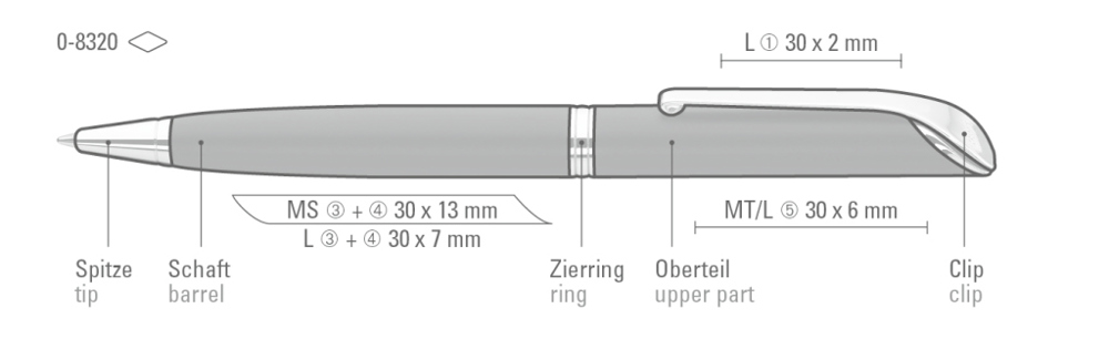 Metall-Drehkugelschreiber mit matter Oberfläche. Metallbeschlagteile glanzverchromt.