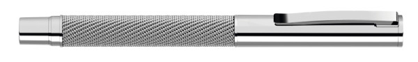 Metall-Rollerball glänzend lackiert mit gefedertem Metallclip und Schaft mit integriertem Meshband.