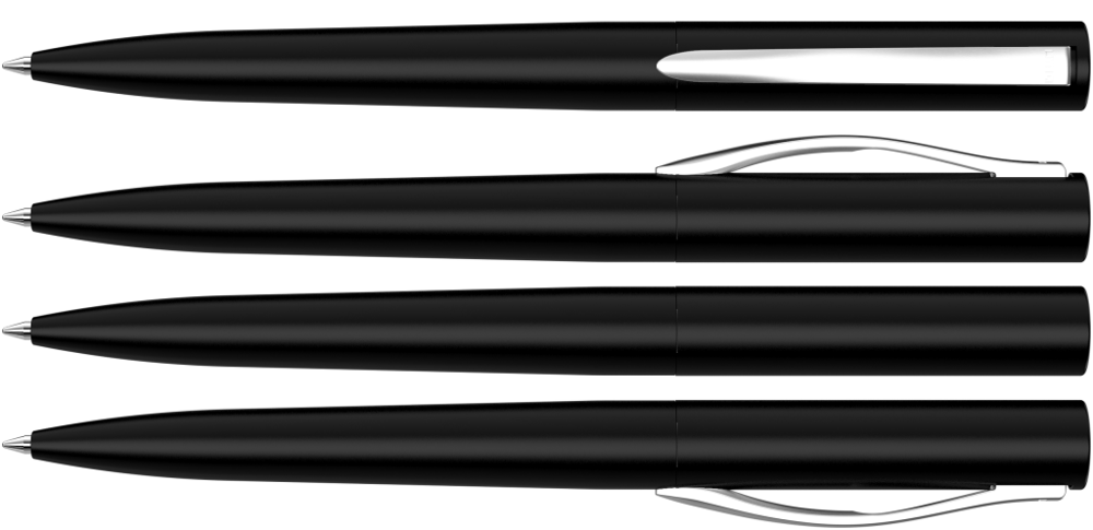 Metall-Drehkugelschreiber mit matt lackiertem Gehäuse, Softdrehmechanik und gefedertem, gebürstetem Clip.