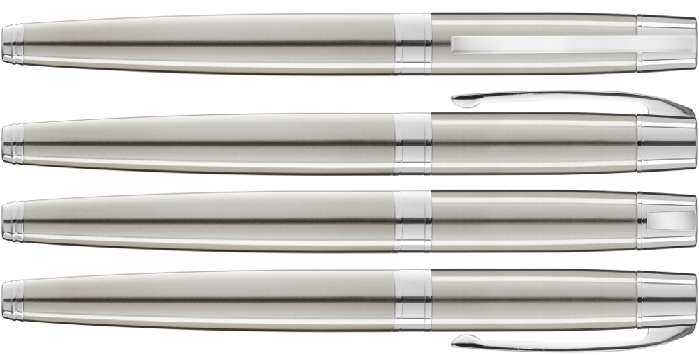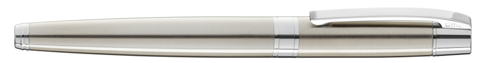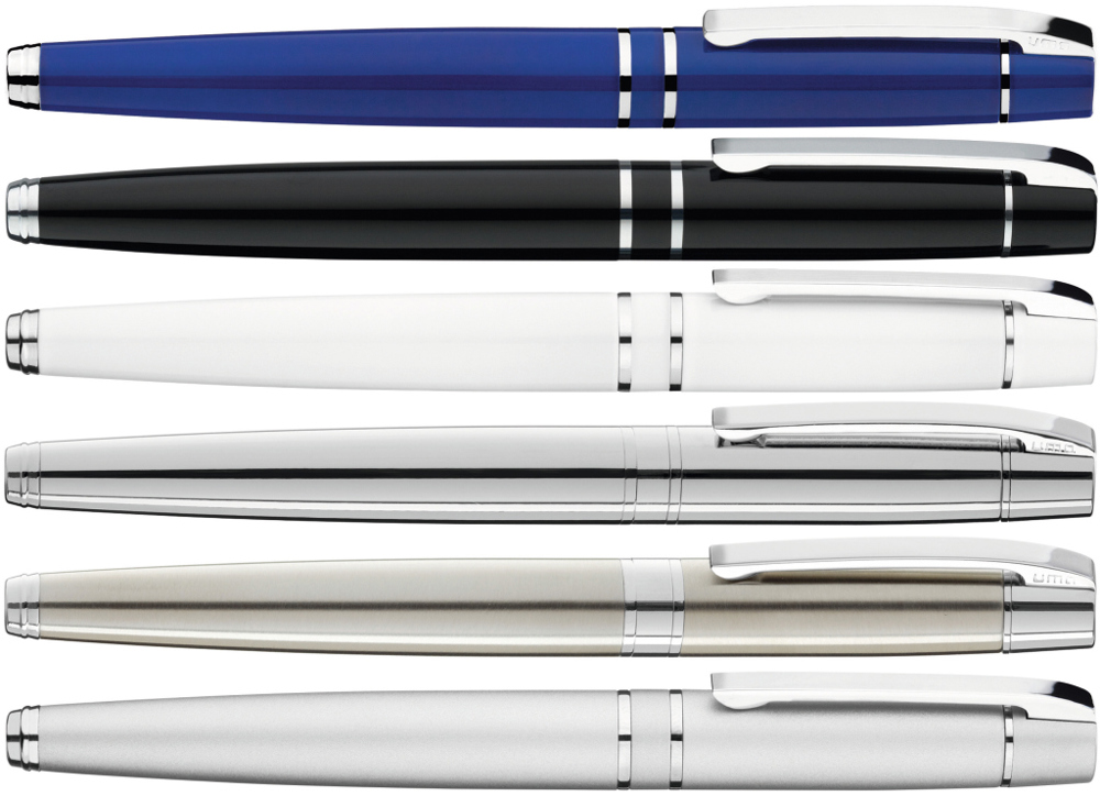 Metall-Rollerball mit gefedertem Clip und schwarzer Gummigriffzone. Beschlagteile glanzverchromt.