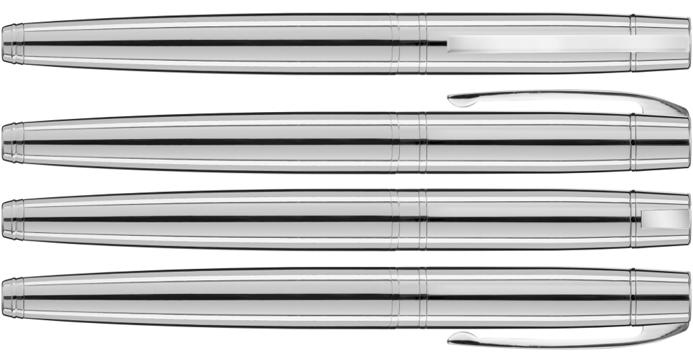 Metall-Rollerball mit gefedertem Clip und schwarzer Gummigriffzone. Beschlagteile glanzverchromt.