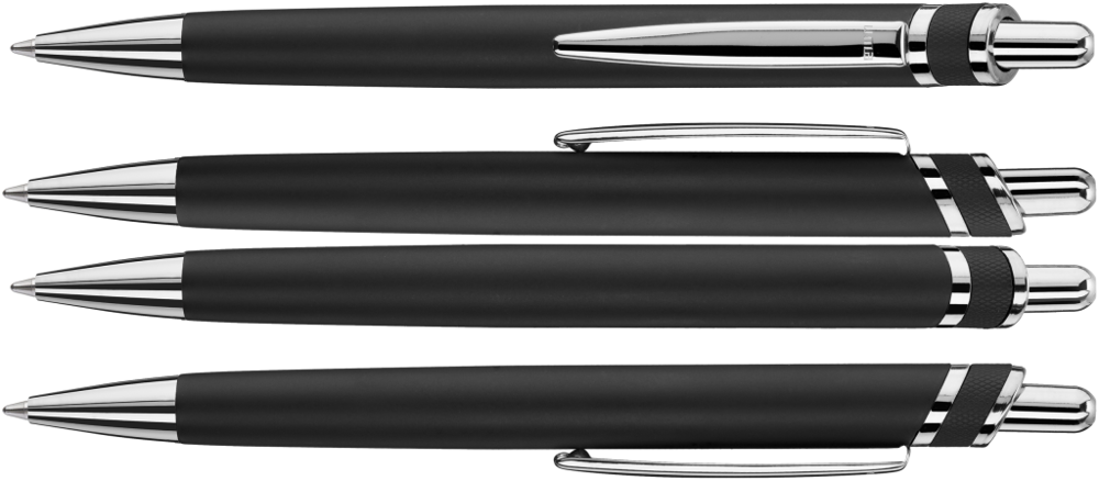 Metall-Druckkugelschreiber mit matt lackiertem Aluminiumschaft. Beschlagteile glanzverchromt.