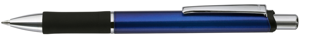 Metall-Druckkugelschreiber mit lackiertem Aluminiumschaft. Schwarzer Gummigriffzone und Metallclip.