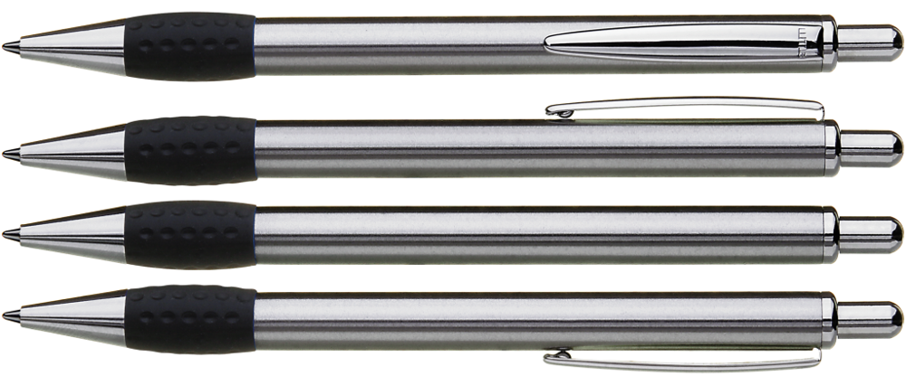 Metall-Druckkugelschreiber mit Schaft, Drücker, Clip und Spitze glanzverchromt. Gummigriffzone... mehr