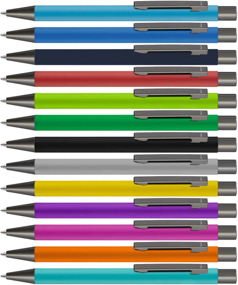 Metall-Druckkugelschreiber mit Softtouch-Gehäuse. Metallclip, Metallspitze und Drücker GUN metallic. mehr