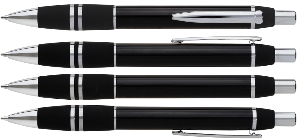 Metall-Druckkugelschreiber mit glanzverchromten Beschlägen.