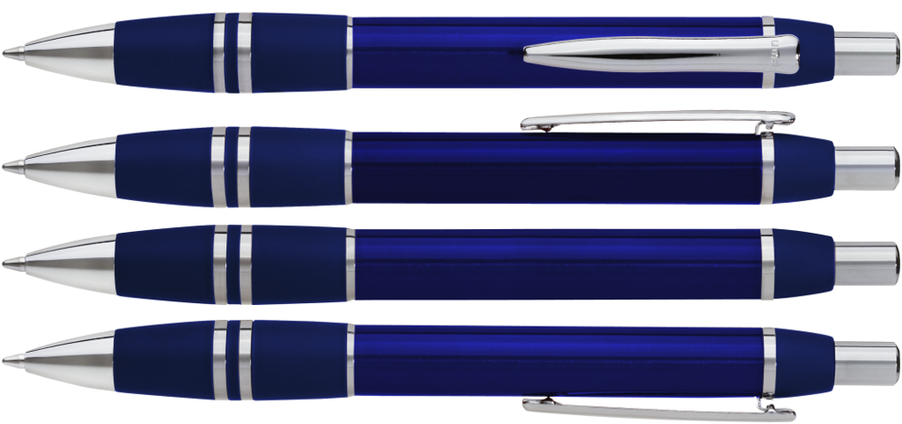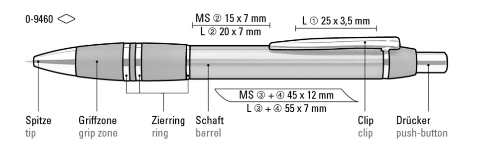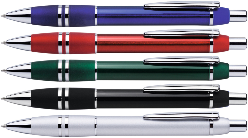 Metall-Druckkugelschreiber mit glanzverchromten Beschlägen.