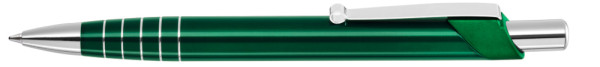 Metall-Druckkugelschreiber mit silbernen Zierringen im Gehäuse und elastischem Metallclip. Spitze... mehr