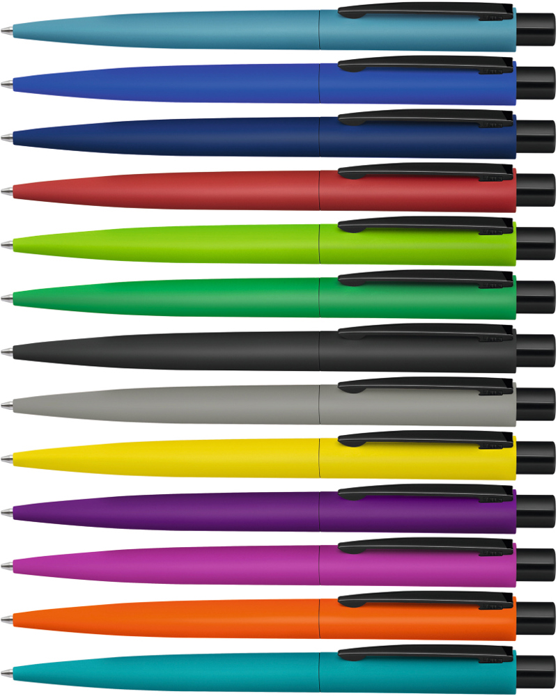 Metall-Druckkugelschreiber mit Softtouch-Gehäuse. Metallclip und Drücker schwarz glänzend. mehr