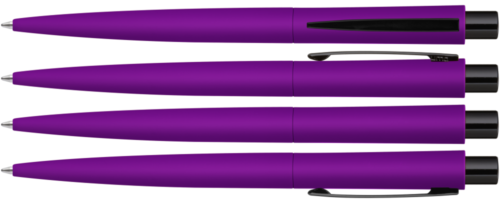 Metall-Druckkugelschreiber mit Softtouch-Gehäuse. Metallclip und Drücker schwarz glänzend.
