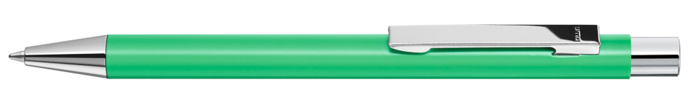 Metall-Druckkugelschreiber mit mattem Gehäuse. Metallclip, Metallspitze und Drücker silber glänzend. mehr