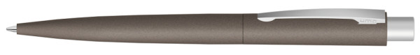 Metall-Druckkugelschreiber mit nachgestellter Beton- bzw. Steinoptik und Haptik. Metallclip und Drücker matt verchromt.