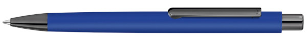 Metall-Druckkugelschreiber mit ellipsenförmigem Softtouch-Gehäuse. Metallclip, Metallspitze und ellipsenförmiger Drücker GUN metallic.