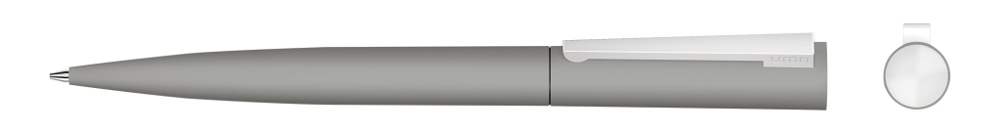 Metall-Drehkugelschreiber mit Softtouch-Gehäuse, gefederter Metallclip und Stopfen matt verchromt.