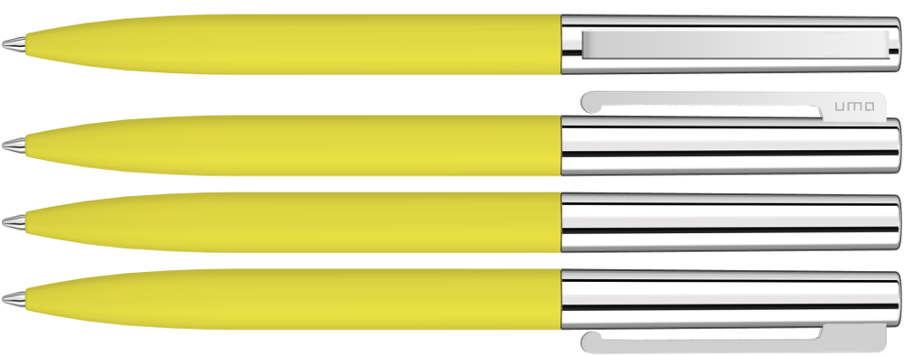 Metall-Drehkugelschreiber mit Softtouch-Schaft, glanzverchromtem Metalloberteil und gefederter Metallclip.