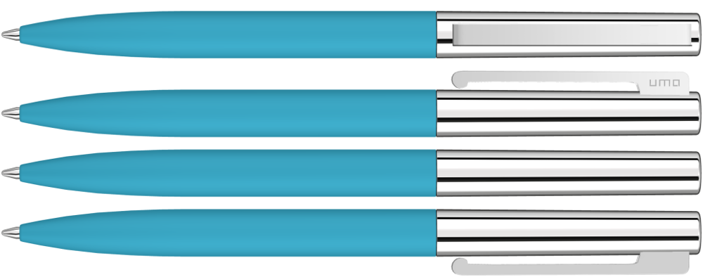 Metall-Drehkugelschreiber mit Softtouch-Schaft, glanzverchromtem Metalloberteil und gefederter Metallclip.