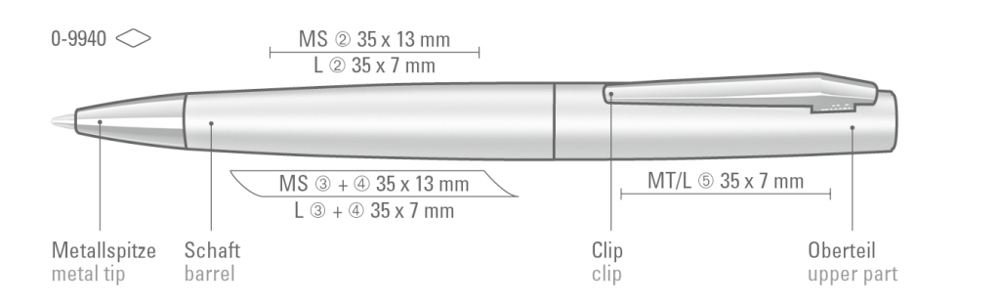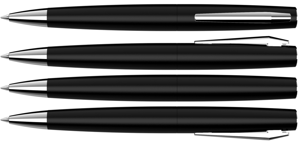 Metall-Drehkugelschreiber mit matt lackiertem Gehäuse und Softdrehmechanik. Metallclip, Metallspitze und Stopfen glanzverchromt.