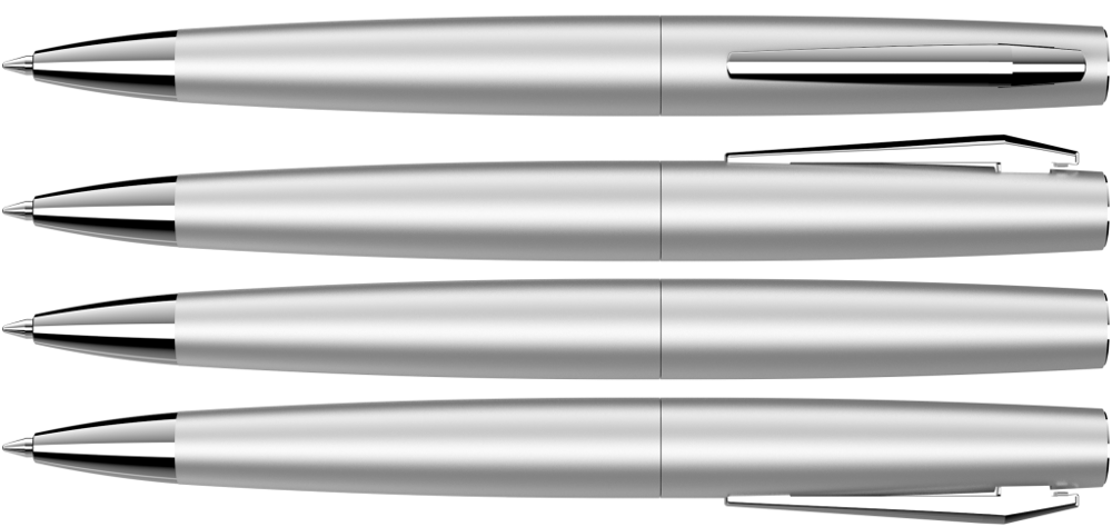 Metall-Drehkugelschreiber mit matt lackiertem Gehäuse und Softdrehmechanik. Metallclip, Metallspitze und Stopfen glanzverchromt.
